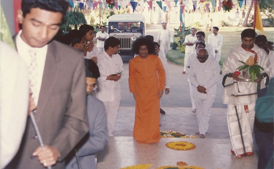 On one occasion, as Swami entered the auditorium and walked towards the stage, students kneeling reverentially on both sides of the walkway, offered rose petals at His Lotus Feet as He walked. Swami was deeply touched! During His discourse, He lovingly remarked, “No one has ever welcomed Me, throwing rose petals in this manner. I am pleased with the way you have welcomed me.”