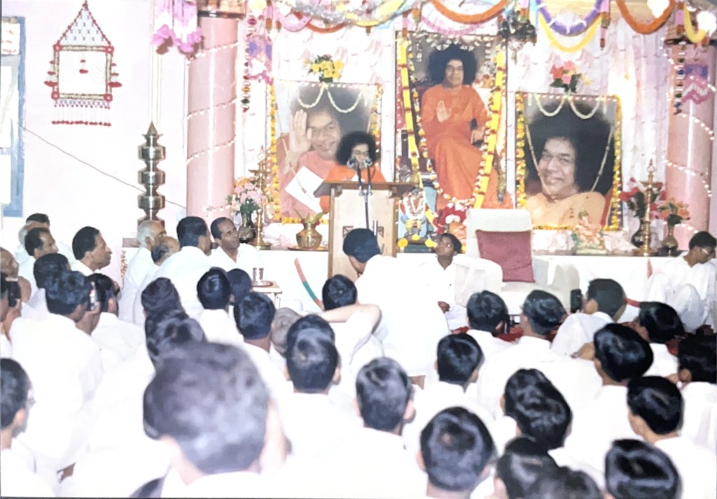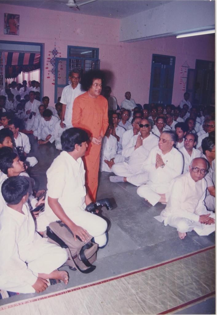 For collecting prasadam for distribution, boys would go inside the interview room. This blissful picture was clicked during one such time around 1993!